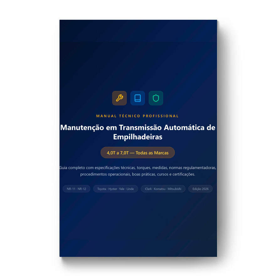 Domine a parte mais complexa das empilhadeiras de grande porte. Se a máquina está sem força, patinando ou com aquecimento na transmissão, este manual é a ferramenta que você precisa para realizar o conserto com precisão e rapidez.