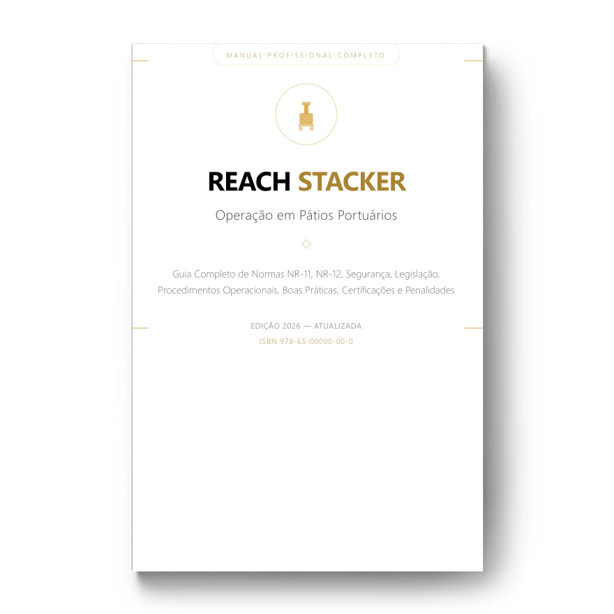 Especialize-se na movimentação de containers com precisão e segurança. A operação de uma Reach Stacker exige responsabilidade extrema e conhecimento técnico profundo. Este manual profissional foi desenvolvido para garantir que o operador domine todas as variáveis do pátio portuário.